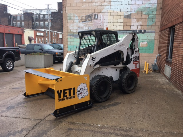 The Yeti Skid-steer snow pusher was built to live up to it's name. This piece of equipment will prove to be a monster in an snow storm. Yeti's Compact Low Pro Push box fit's whatever brand skid steer you prefer to operate from Bobcat and New Holland to Caterpillar. This pusher will be the best attachment you come to own. It was built to last you for many salty snow filled seasons.